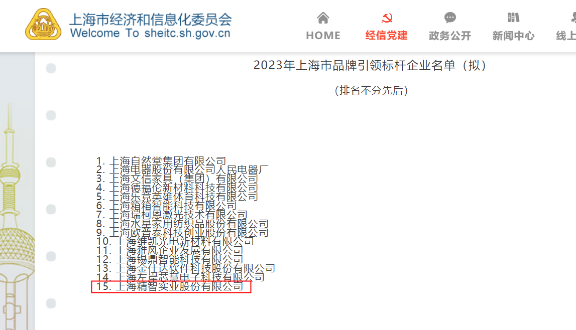 近(jìn)日(rì),上(shàng)海(hǎi)市(shì)品牌引領示範企業(yè)培育評選結果揭曉,上(shàng)海(hǎi)<精智憑借其卓越的(de)品牌影(yǐng)響力和(hé)持續的(de)創新力,成功獲評“上(shàng)海(hǎi)市(shì)品牌引領标杆企業(yè)&rdquo₽;稱号。