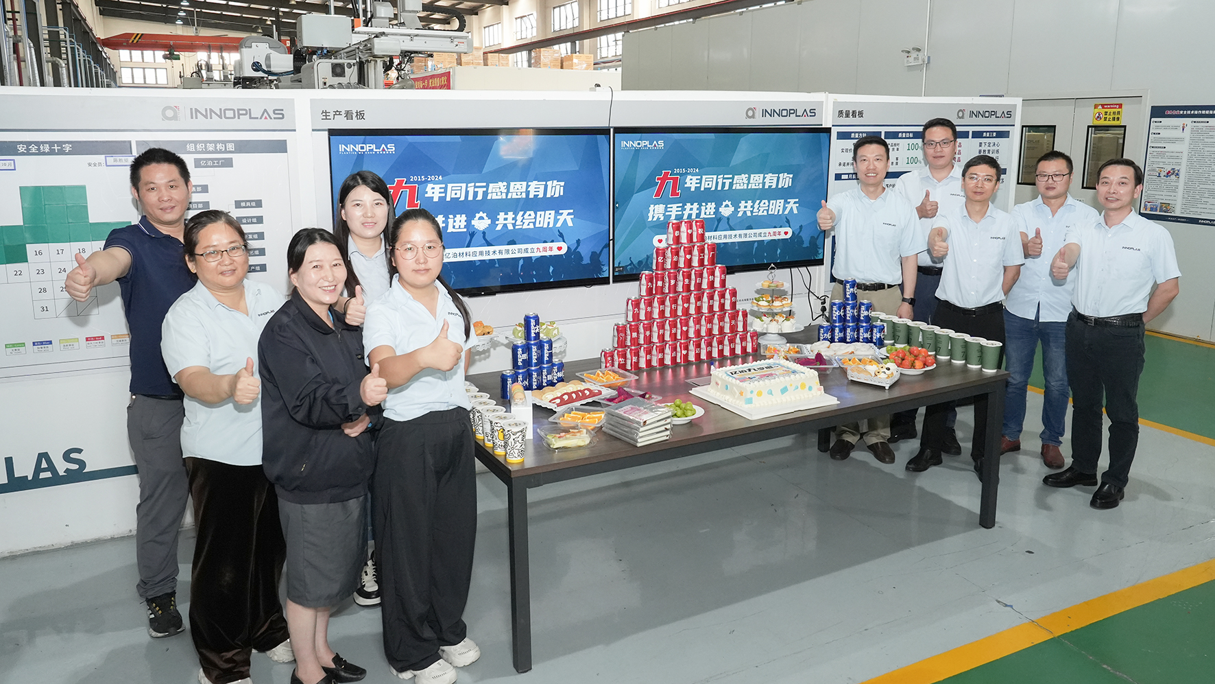10月(yuè)19日(rì),億泊工(gōng)廠(chǎng)迎來(lái)她(tā)的(de)九周歲生(s✘hēng)日(rì),工(gōng)廠(chǎng)舉辦了(le)九周年(nián)廠(chǎng)慶活動。塑膠科(kē)技(jì)事(shì)業(yè)部總經理(lǐ)鄭亮(γliàng),副廠(chǎng)長(cháng)陳勝望、李湘坤出席活動,億泊工(gōng)廠(chǎng)全體(tǐ)員(yuán★)工(gōng)參加活動。